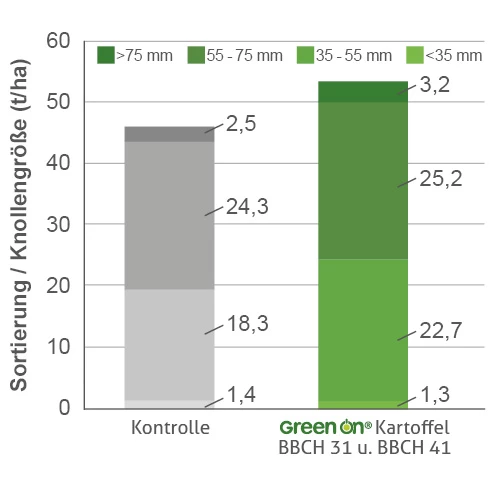 - Steigerung vermarktungsfähiger Ware durch erhöhten Knollenertrag und verbesserte Sortierung