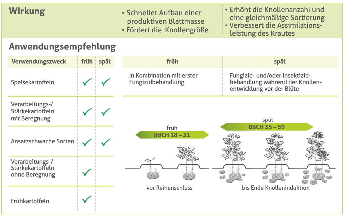 - Optimierte Knollenentwicklung passend zur Nutzungs- richtung und sortenspezifischem Verhalten bei der Knollenanlage
